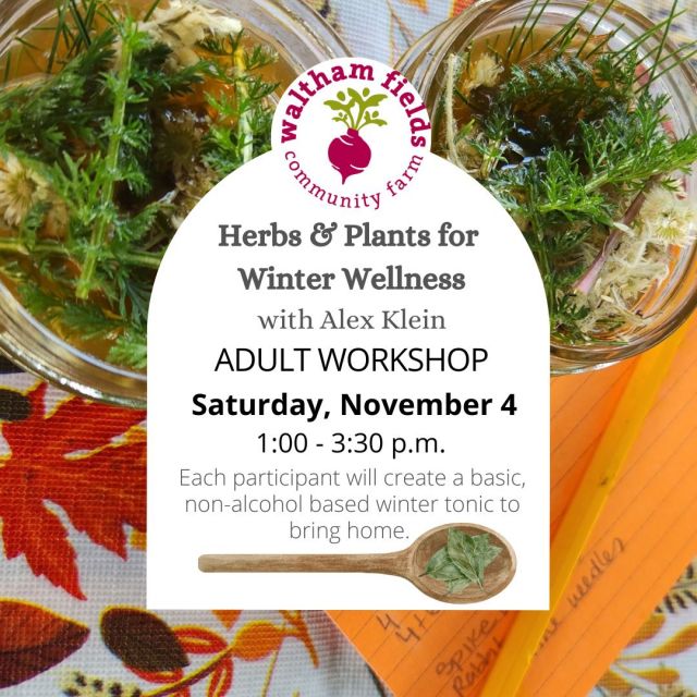 Herbs & Plants for Winter Wellness Saturday November 4, 2023 1:00 - 3:30 pm $40 per…