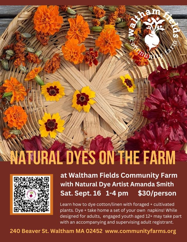 Natural Dyes on the Farm Saturday, September 21, 2024 1:00 - 4:30 p.m. $90 per participant…