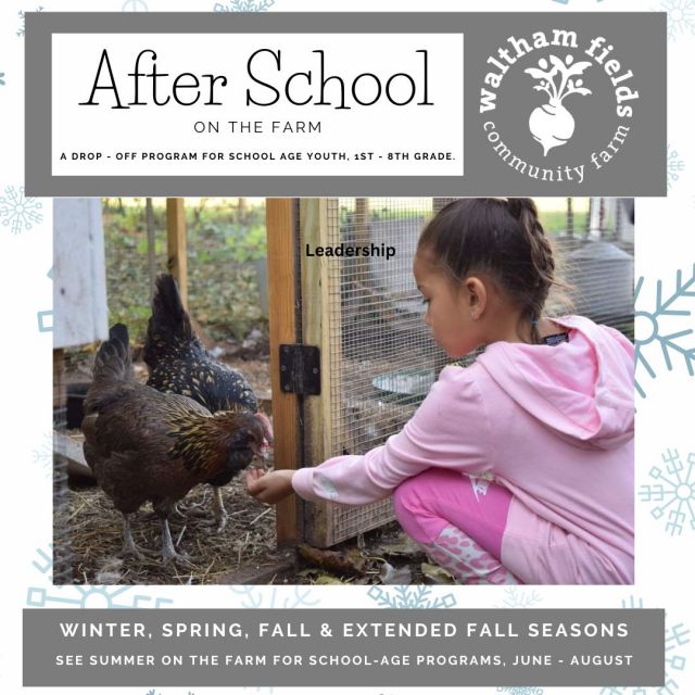After School on the Farm 3:30 - 5:00 p.m. Winter, Spring, Fall 2024 $250.00 per season REGISTER…