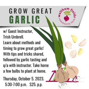 Talk will be followed by a garlic tasting and Q/A with Trish.