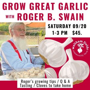 Join Roger B. Swain, the man in the red suspenders from PBS's Victory Garden, and your fellow garlic-growing enthusiasts for this exciting workshop on the farm, geared towards adult learning but open to youth attending with their adults.