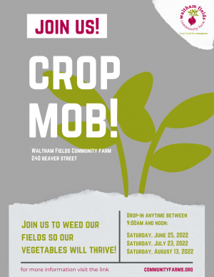 Stop by our farm fields at 240 Beaver Street anytime between 9am - noon. We will show you what to do, no experience needed. We welcome children supervised by adults.